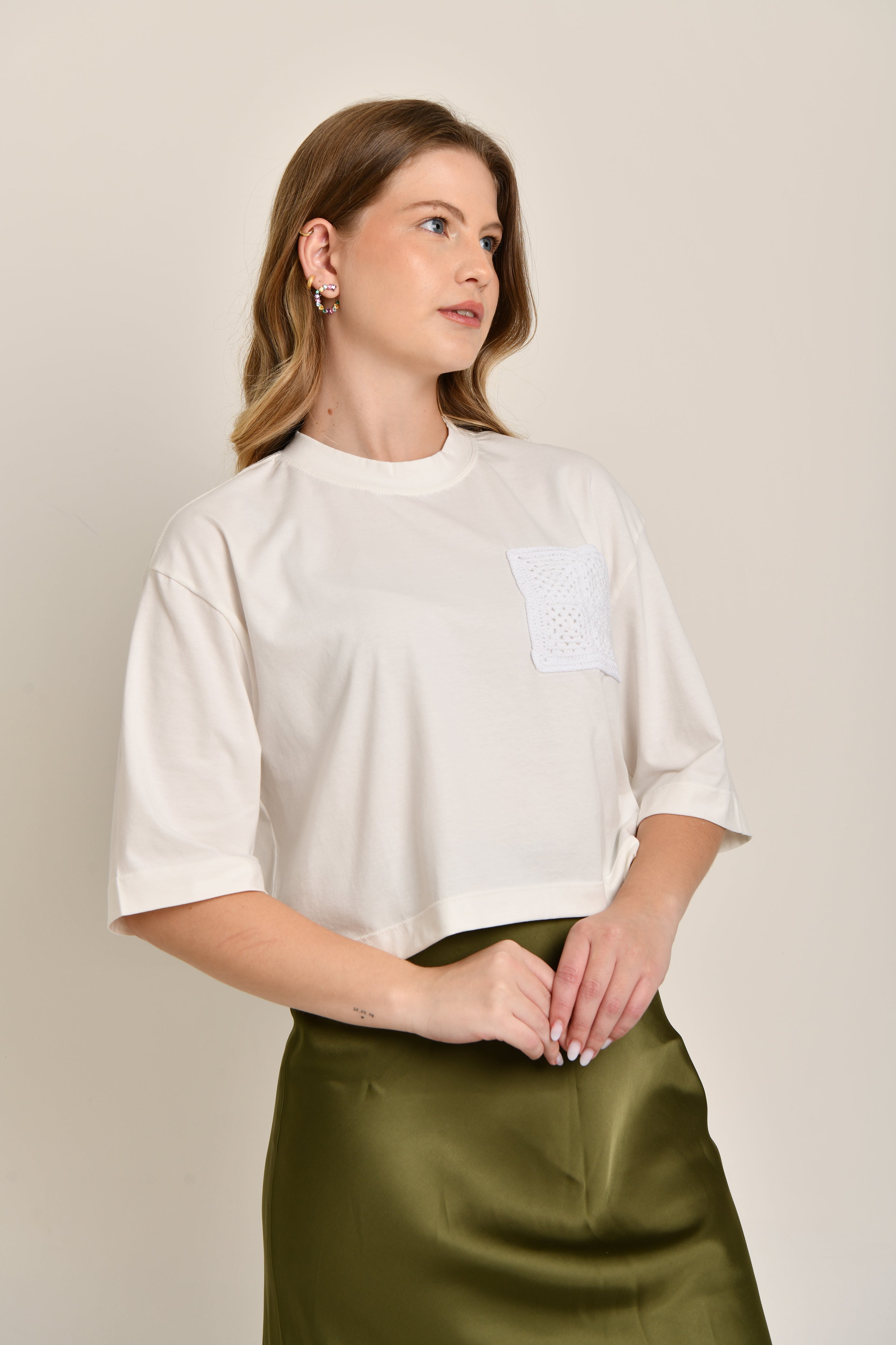O algodão egípcio é reconhecido mundialmente por sua excelência, e ao escolher uma peça, você opta por sofisticação e resistência, garantindo um caimento perfeito e um toque delicado que se mantém ao longo do tempo. Disponível na cor OFF, nosso cropped feminino é ideal para acompanhar você em todas as ocasiões, oferecendo estilo e conforto em qualquer momento do dia.