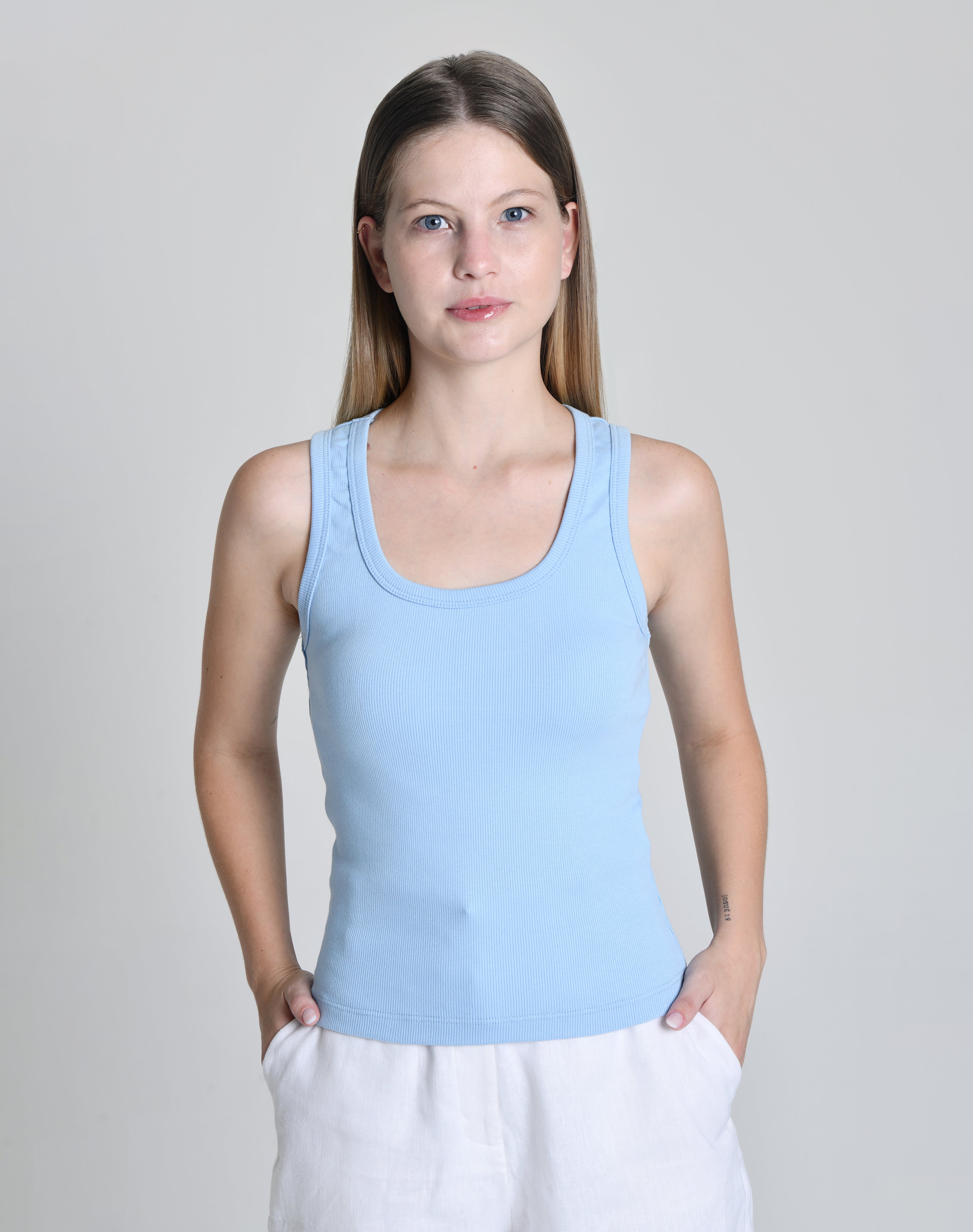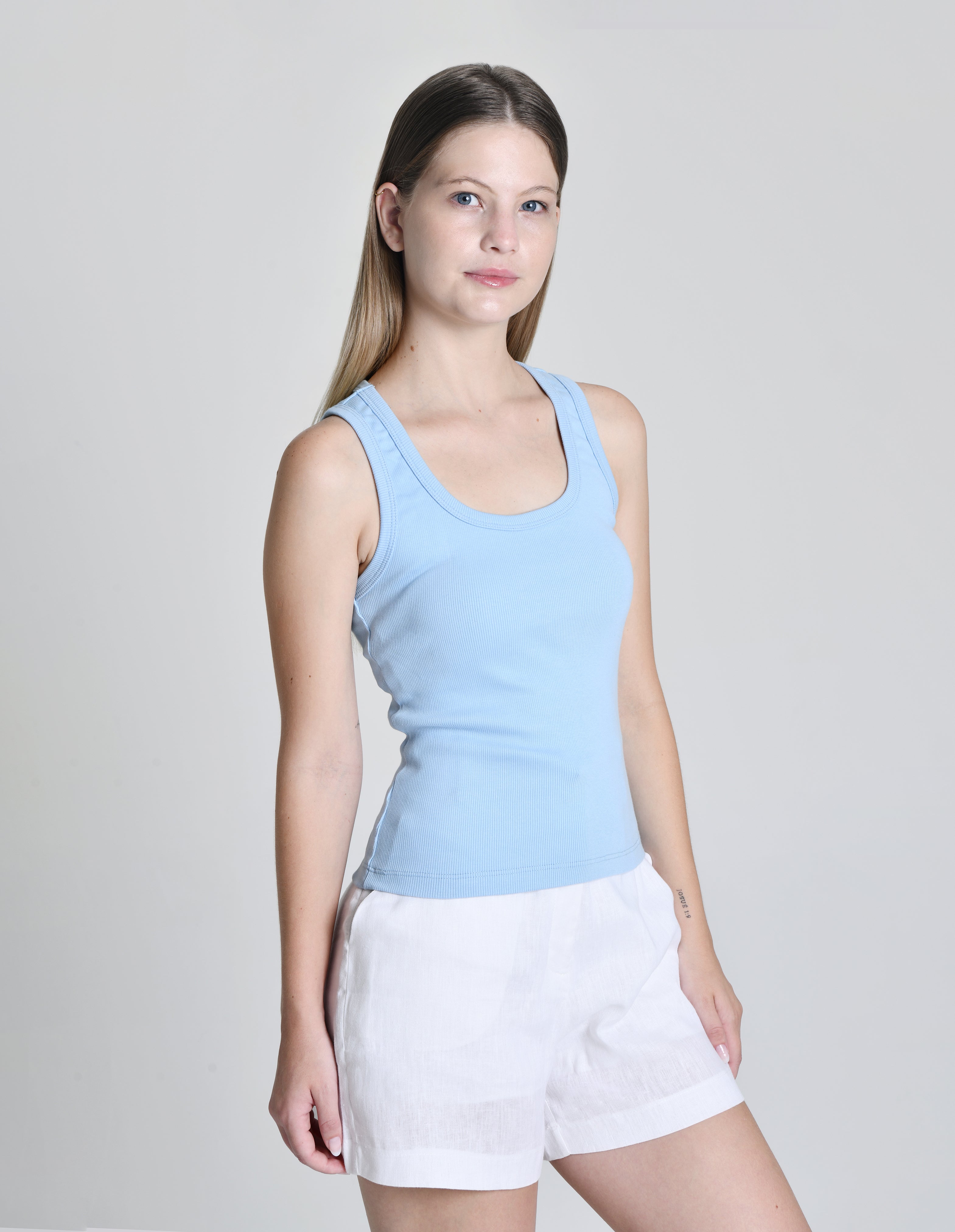 Regata Feminina Canelada Isabeli Azul Claro