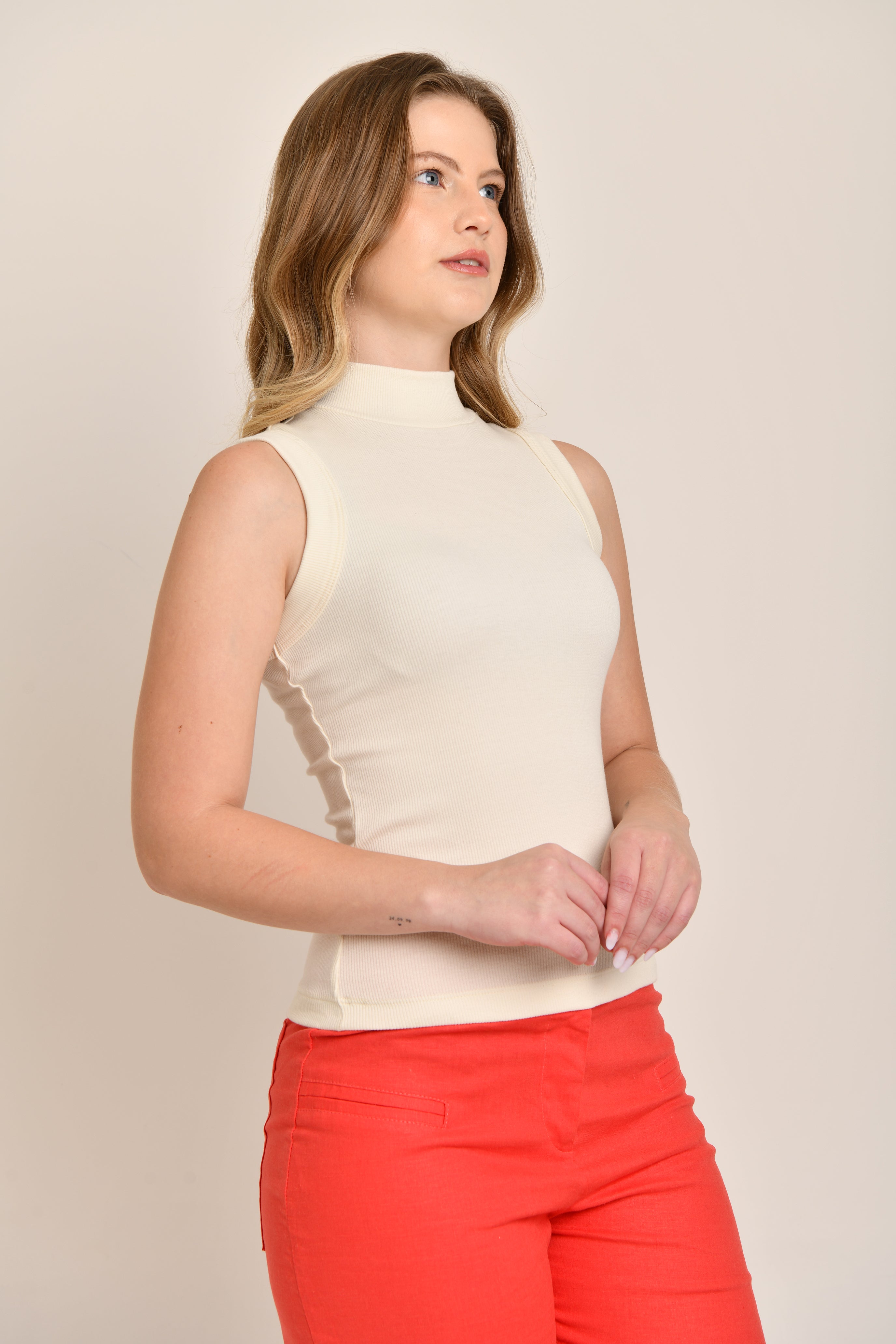 Regata Feminina Canelada Gola Alta Lilian Off